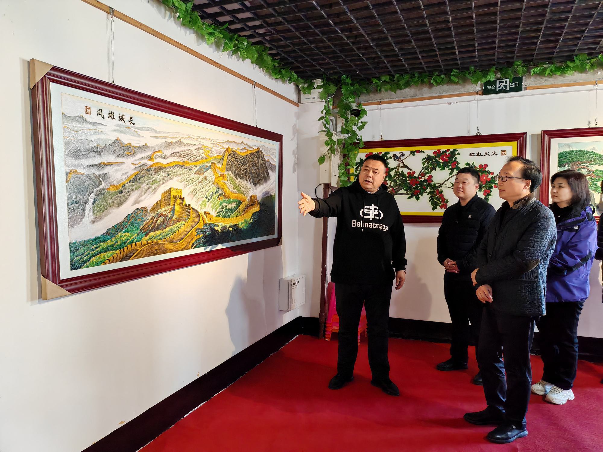 集乾釗主任一行在鄭鐵軍董事長的陪同下參觀了鄭氏砂藝非遺展館,觀看了鄭氏砂藝創(chuàng)作的各類非遺砂畫作品,考察團(tuán)領(lǐng)導(dǎo)在長城砂畫系列前駐足欣賞,對栩栩如生的長城砂畫作品給予了高度贊譽(yù)。期間董事長鄭鐵軍對近年來鄭氏砂藝非遺文化的發(fā)展情況進(jìn)行了簡單介紹。集乾釗主任對鄭氏砂藝非遺文化的傳承和發(fā)展表示了充分肯定,并對鄭氏砂藝的傳統(tǒng)手工技藝給予高度評價。