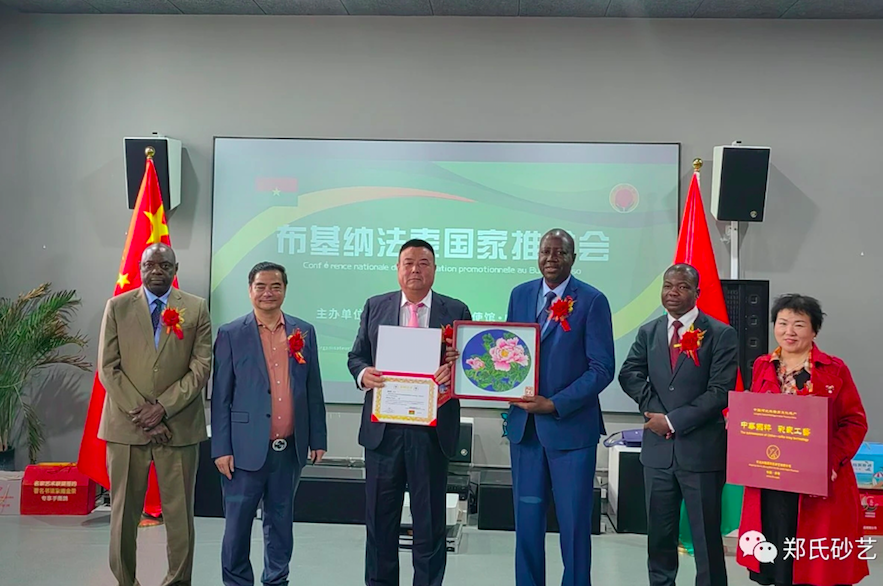 (中名聯(lián)國(guó)際圖片說(shuō)明:中名聯(lián)簽約國(guó)禮工藝美術(shù)大師鄭鐵軍老師的作品被布基納法索大使作為國(guó)禮收藏并頒發(fā)證書(shū))