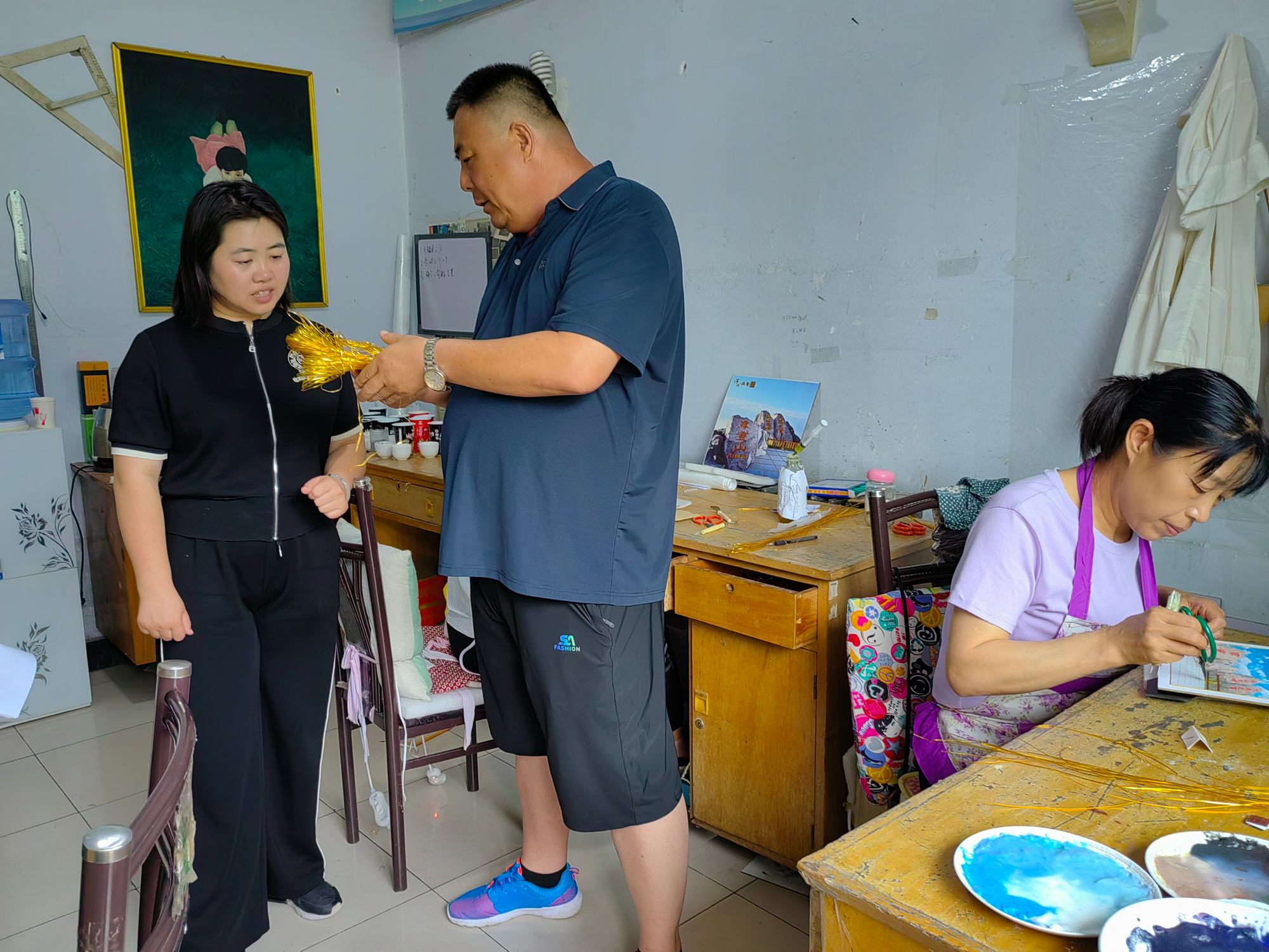 溫偉副部長一行在鄭氏砂藝執(zhí)行董事長鄭鐵軍的陪同下,參觀了鄭氏砂藝非遺文化展館,在生產(chǎn)車間觀看了鄭氏砂藝(畫)的制作手法和制作原料。期間,鄭鐵軍董事長就鄭氏砂藝的發(fā)展歷程、企業(yè)文化和企業(yè)發(fā)展方向等多方面進行了詳細地介紹,溫部長對鄭氏砂藝的發(fā)展和獨具特色的砂畫藝術給予了高度評價,并就鄭氏砂藝今后發(fā)展方向提出了合理建議,她指出鄭氏砂藝在今后的發(fā)展中要充分發(fā)揮自身非遺特色,將非遺活動和中國傳統(tǒng)節(jié)日相結(jié)合,開展相應活動,努力將鄭氏砂藝非遺文化融入廣大社會群眾中去,為建設“文化興隆”作出應有的貢獻。