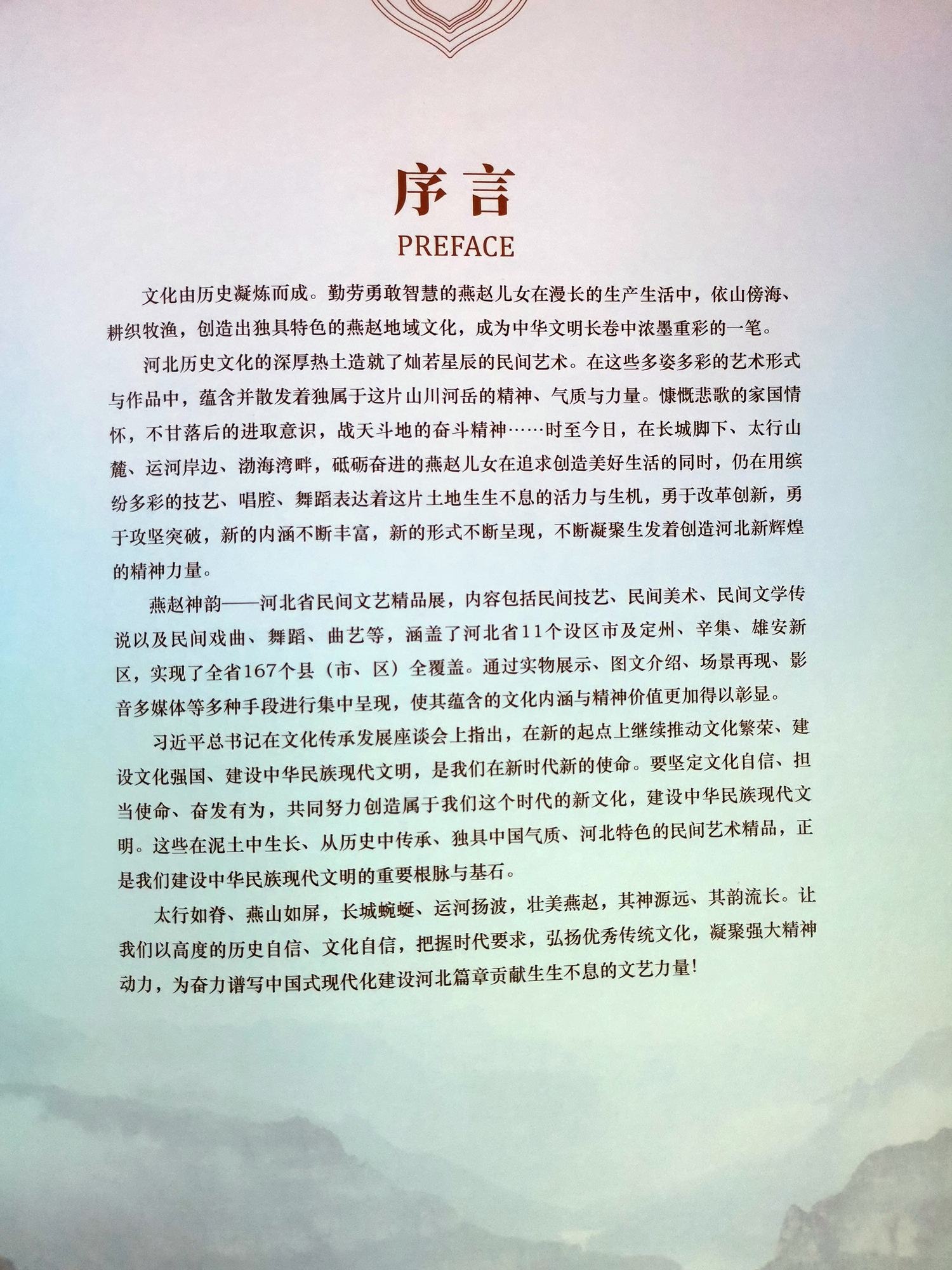 據(jù)悉,本次展覽為河北文藝家之家常設(shè)展覽,展出包含41名省級以上工藝大師在內(nèi)的共計(jì)115名民間文藝家的作品以及民間舞蹈、民間音樂、民間曲藝、民間戲曲、節(jié)日禮儀、民間諺語、民間故事、武術(shù)雜技等展示項(xiàng)目,首次實(shí)現(xiàn)了全省167個(gè)縣(市、區(qū))民間文藝瑰寶全覆蓋,達(dá)到“一縣一品”精準(zhǔn)呈現(xiàn),并通過實(shí)物展示、圖文介紹、場景再現(xiàn)、影音多媒體等多種手段進(jìn)行集中呈現(xiàn),使其蘊(yùn)含的文化內(nèi)涵與精神價(jià)值更加得以彰顯。